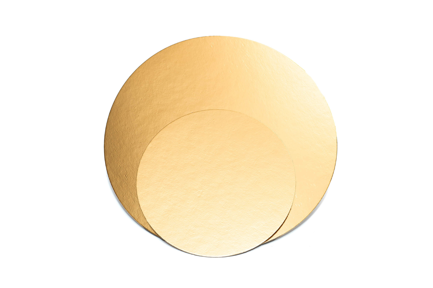 1050 gsm (~1 mm storio) Plonesni, lankstesni padėklai, dengti auksinės spalvos poliesterio plėvele iš vienos pusės. Tinkami lengvesniems tortams, keksams ir pyragams. Galimi skersmenys: nuo 12 cm iki 32 cm.